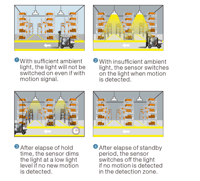3) 3-step dimming function (stand-by period be set to “10S/1min/3min/5min/10min/30min”)